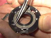 シャッターバネをを動かすカムを抜きます。切り込みが、波状のくぼみにあると 抜けます。