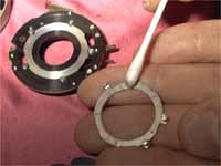 リングと本体が接する部分を綿棒で拭きます。