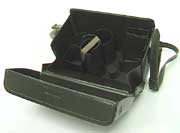 軍用のヌ-キー付きズマロンの革ケース。"ハーフムーンケース"とも呼ばれる。一般用はチョコレート色。ヌーキー付きズミクロン35mm/f2用を兼ねている。