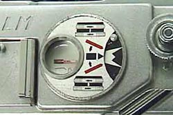 先程の露出計メーターを見ながら、赤い針がまん中にくるように絞りを調節します。あとはファインダーをのぞいて二重像を合致させるようにしてピントをあわせ、撮影します。