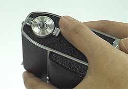 まず、フィルムの装填方法です。ボディ底部の裏蓋開放レバーをまわします。