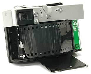 フィルムの先端をスプールに差し込んで巻き上げます。
