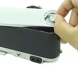 フィルムを装填するためにボディ底面の爪を起こし、蓋を開けます。