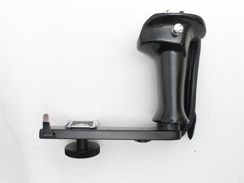 調節できるレザーストラップはより堅固にグリップでき、カメラはブラケットに組み込まれているレリーズでシャッターを切ります。